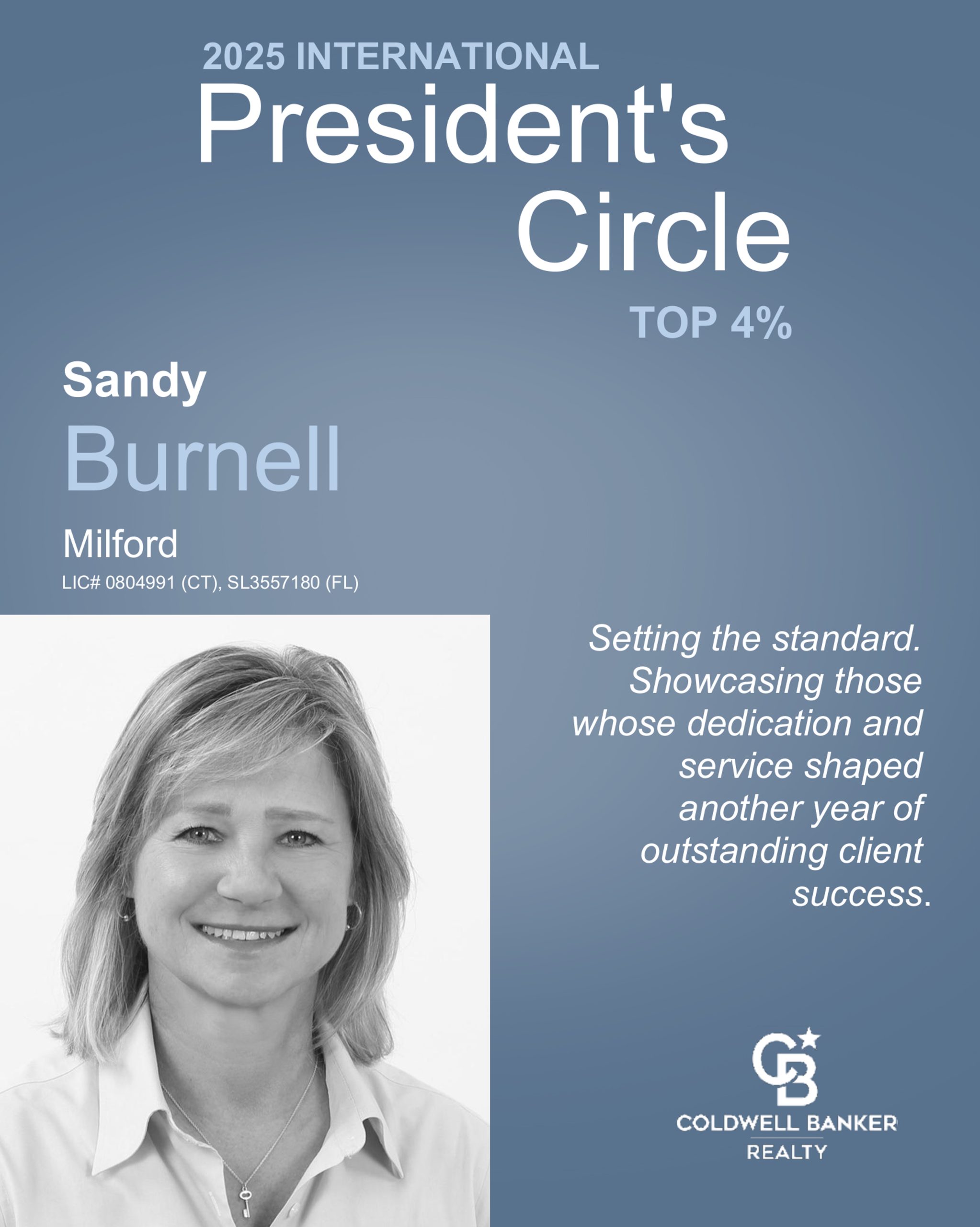 I'm Sandy Burnell, real estate agent with Coldwell Banker Residential Brokerage in Milford CT. I am a member of Coldwell Bankers elite awards group "The International Diamond Society". Top